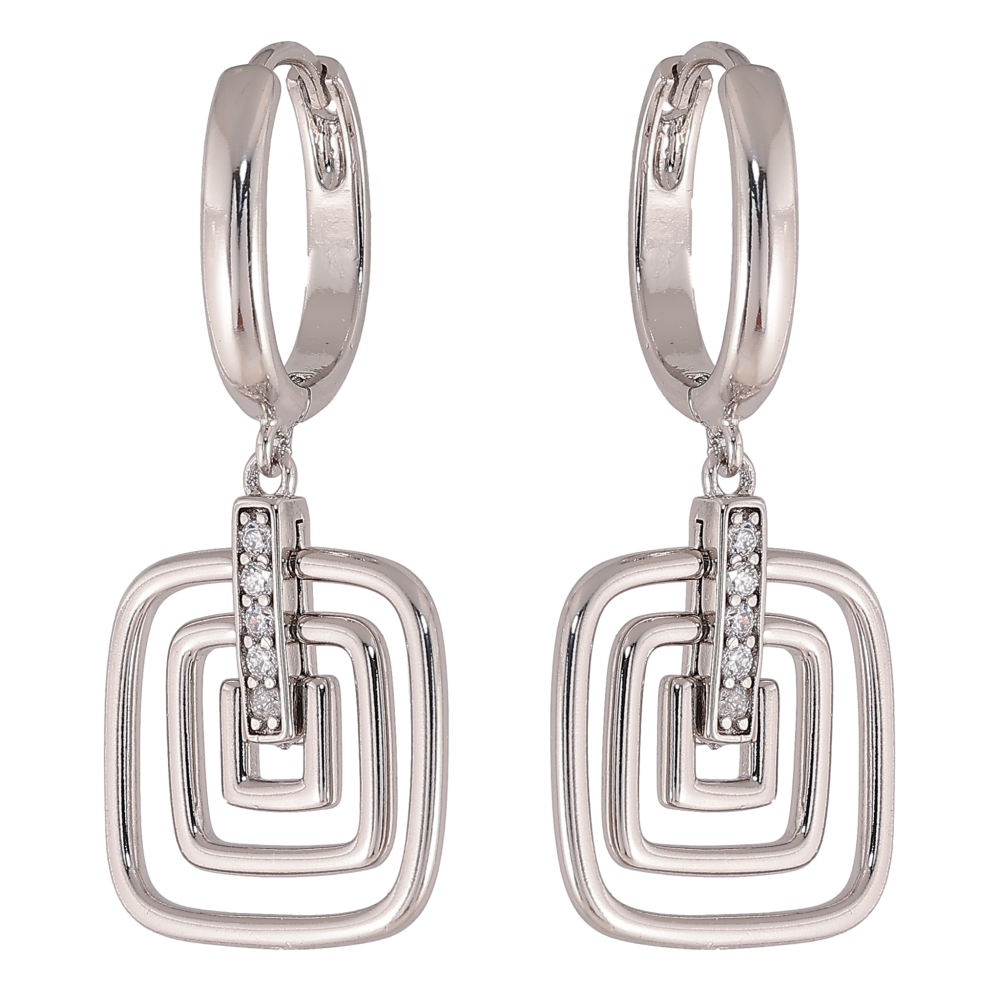Сережки Xuping колір Родій підвіски на колечках "Квадратні"