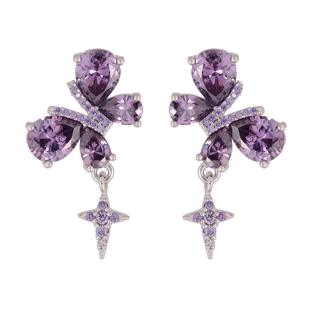 Сережки Xuping колір Родій пусети "Бузкові кристальні метелики"