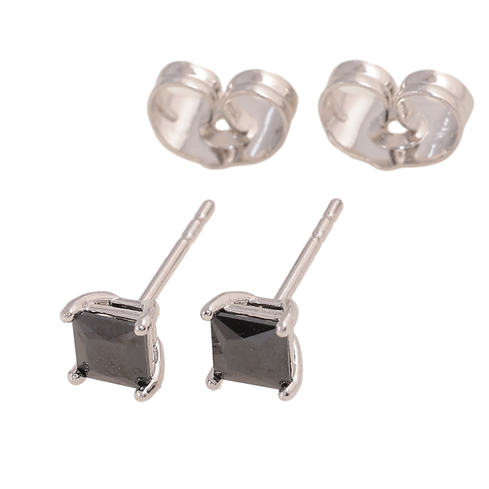 Сережки Xuping колір Родій пусети "Чорні кристали" 4х4мм