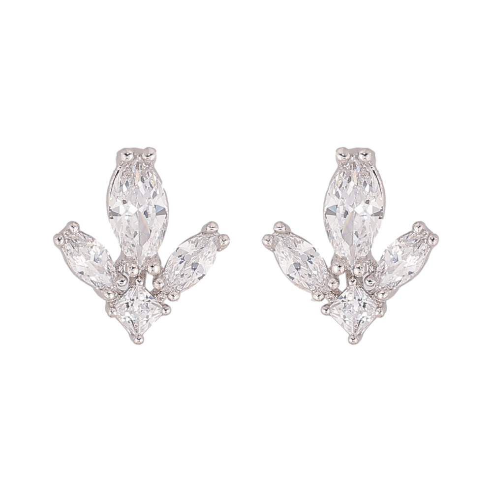 Сережки Xuping колір Родій пусети "Кристальні листочки"