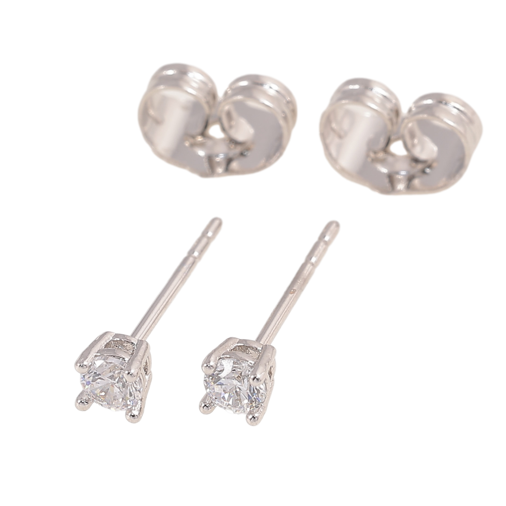 Сережки Xuping колір Родій пусети "Кристали в 4-х крапановій оправі" ø 3мм