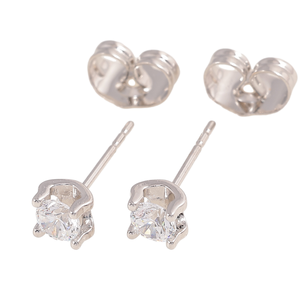 Сережки Xuping колір Родій пусети "Кристали в 4-х крапановій оправі" ø 4мм