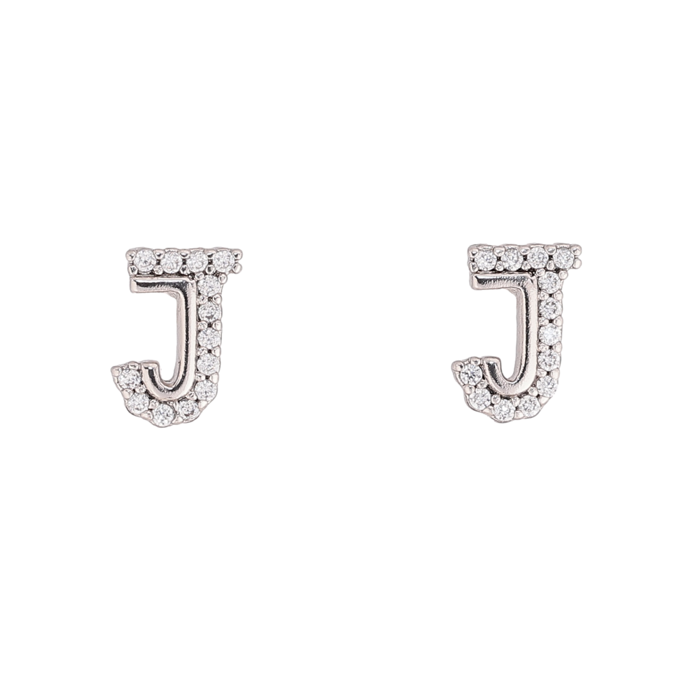 Сережки Xuping колір Родій пусети "Літера J з кристалами"