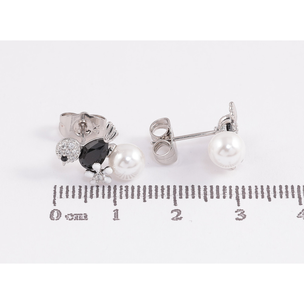 Сережки Xuping колір Родій пусети "Пташка з чорним кристалом на перлині"