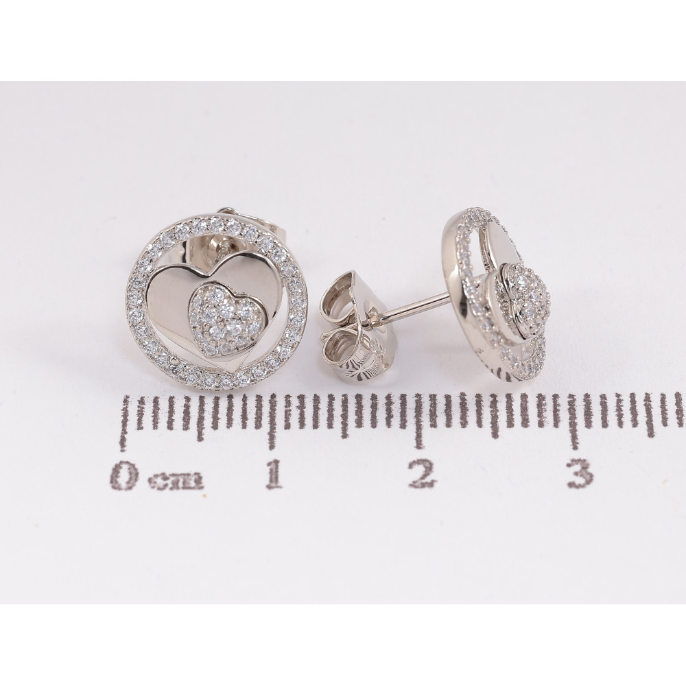 Сережки Xuping колір Родій пусети "Сердечки в колечках"