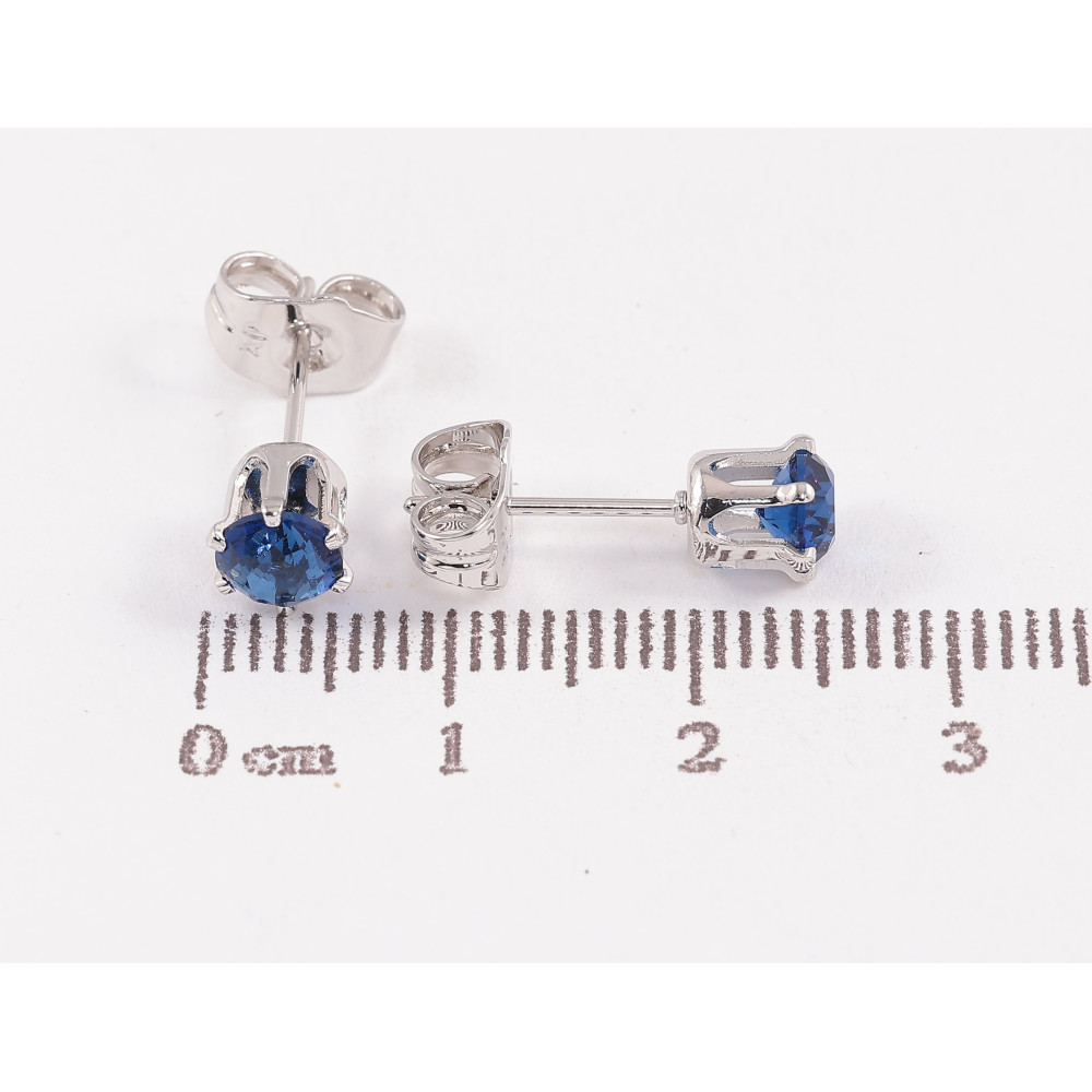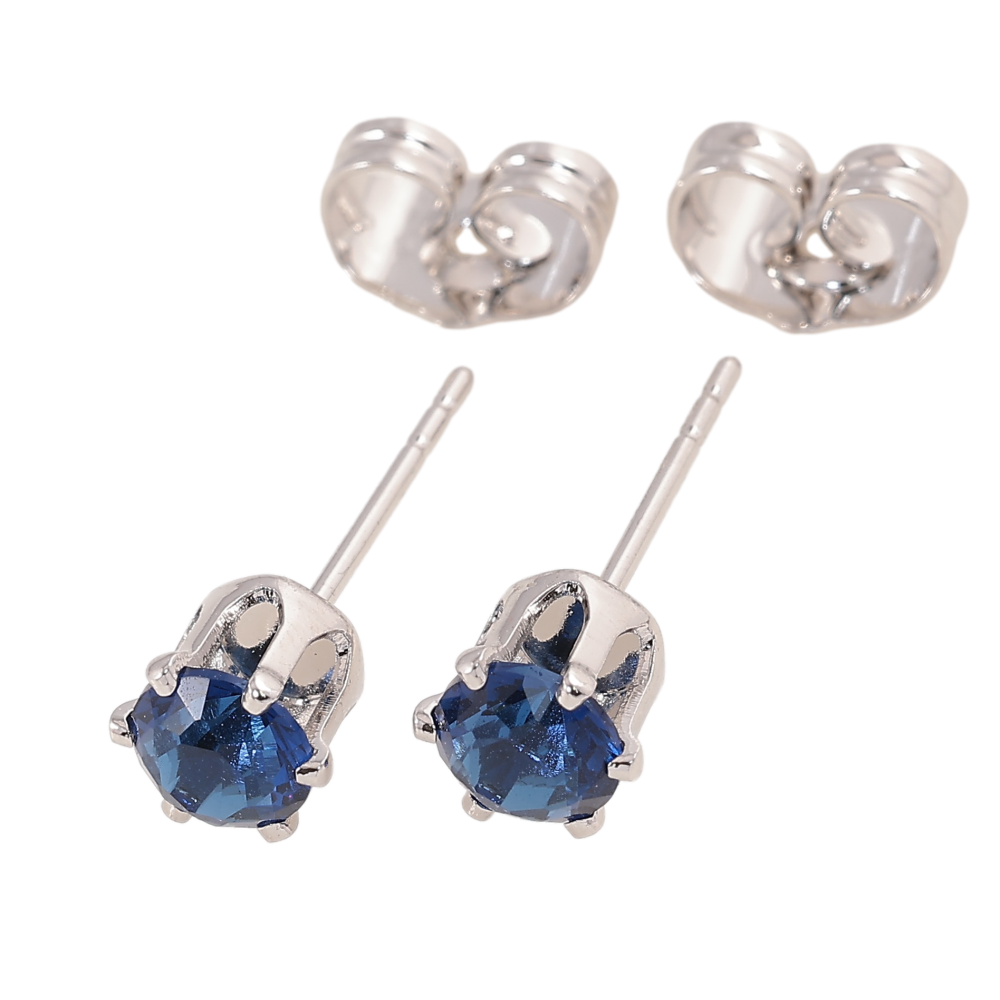 Сережки Xuping колір Родій пусети "Сині кристали в 6-ти крапановій оправі" ø 5мм