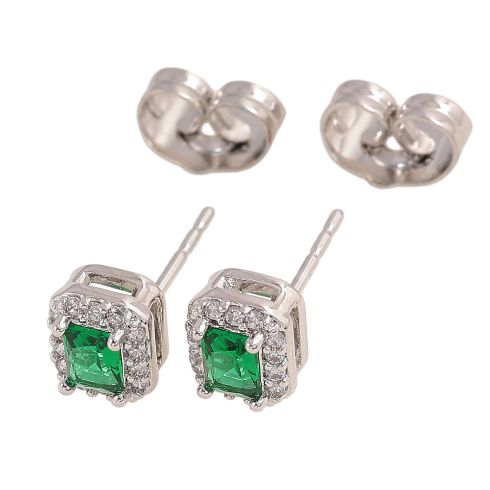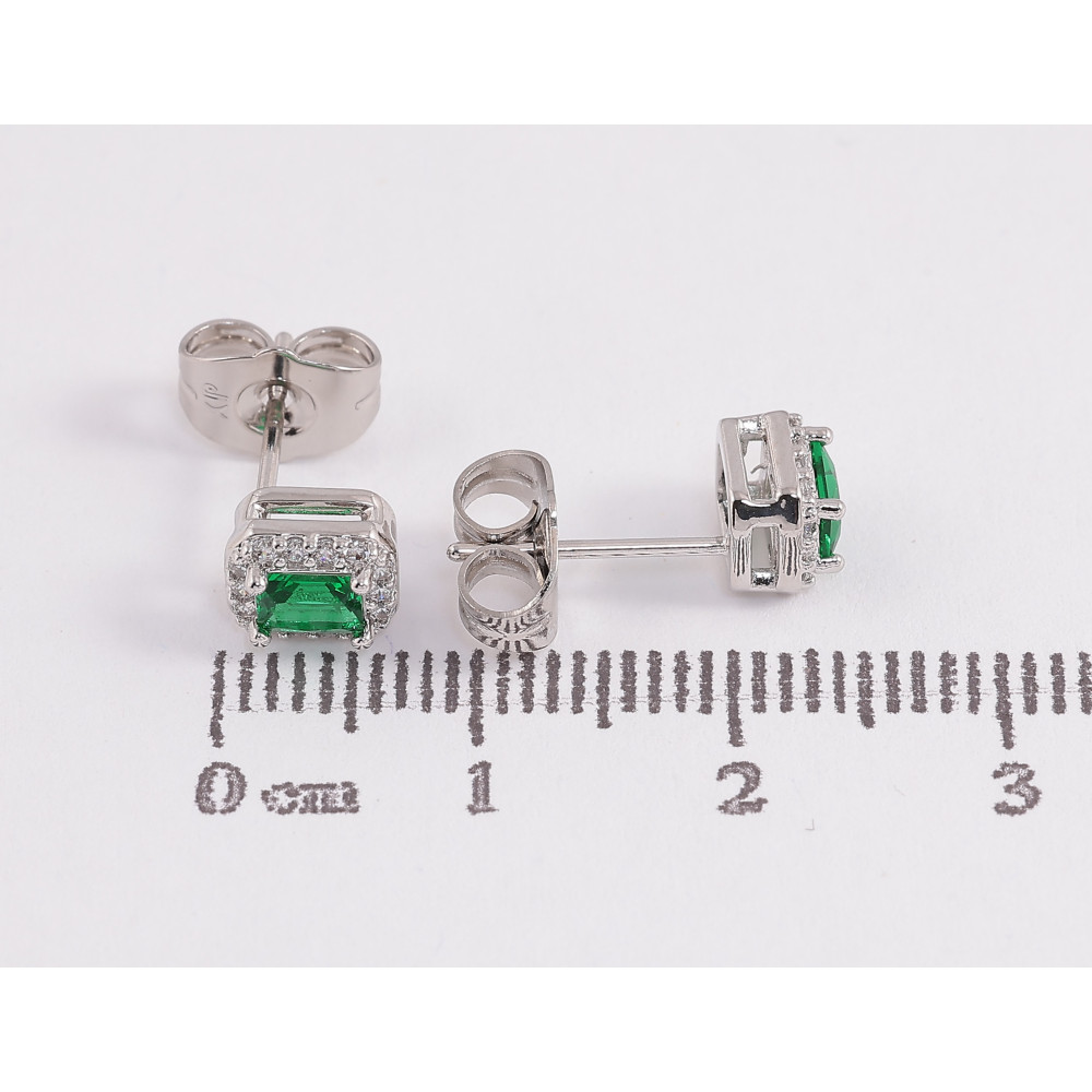 Сережки Xuping колір Родій пусети "Зелені кристали в обрамленні"