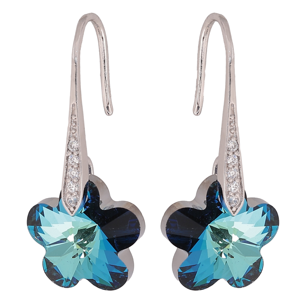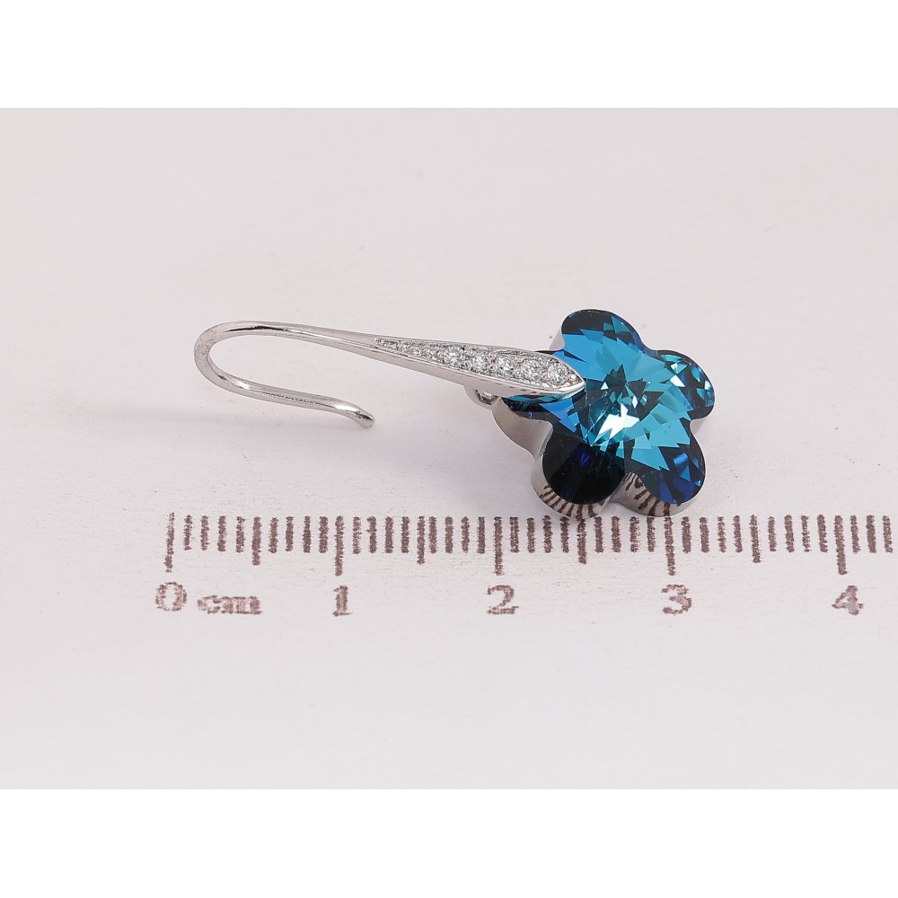 Сережки Xuping колір Родій з кристалами Swarovski французький замок "Кристальні квіточки Metallic Blue"