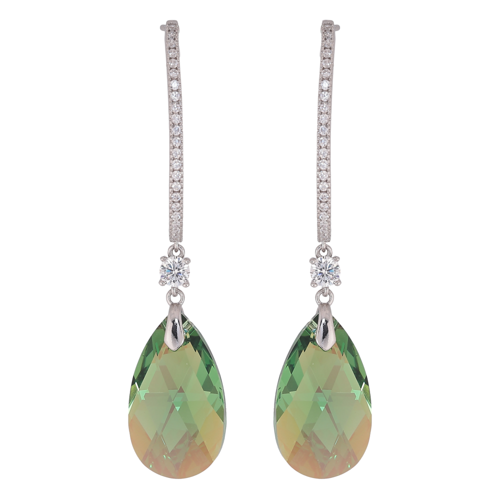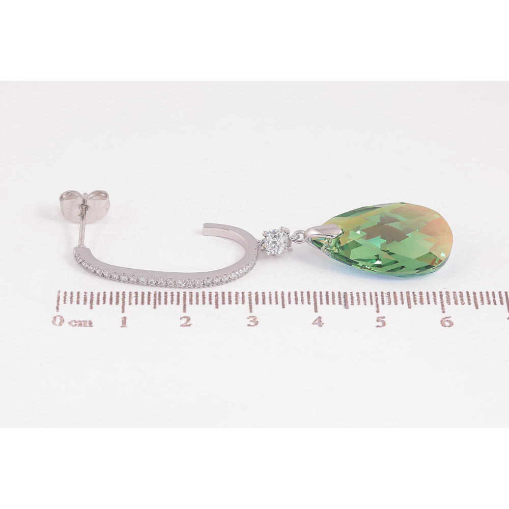 Сережки Xuping колір Родій з кристалами Swarovski пусети "Дуга кристальна з підвісками Luminous Green"