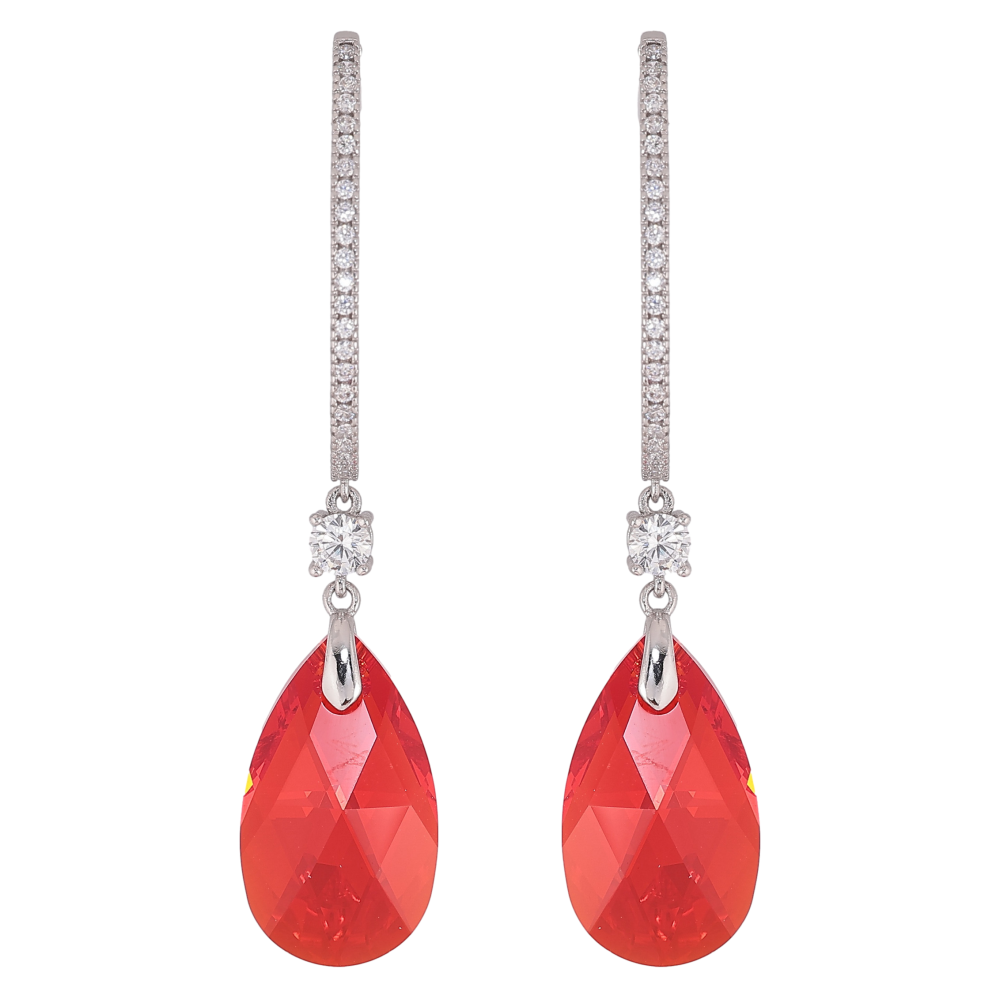 Сережки Xuping колір Родій з кристалами Swarovski пусети "Дуга кристальна з підвісками Siam"
