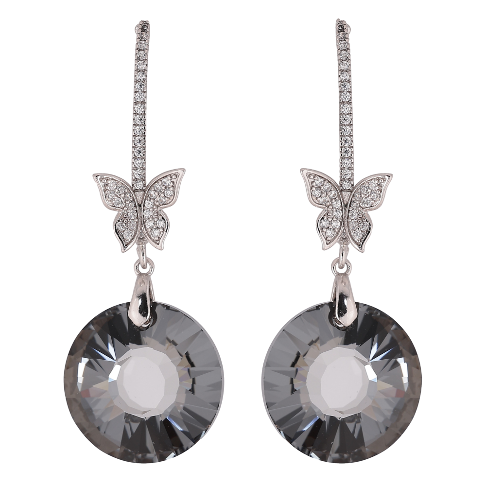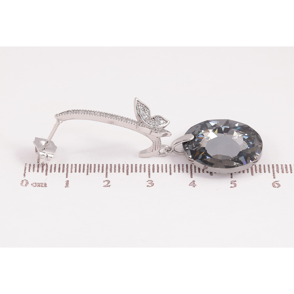 Сережки Xuping колір Родій з кристалами Swarovski пусети "Кристалеві дуги з метеликами та підвісками Graphite"