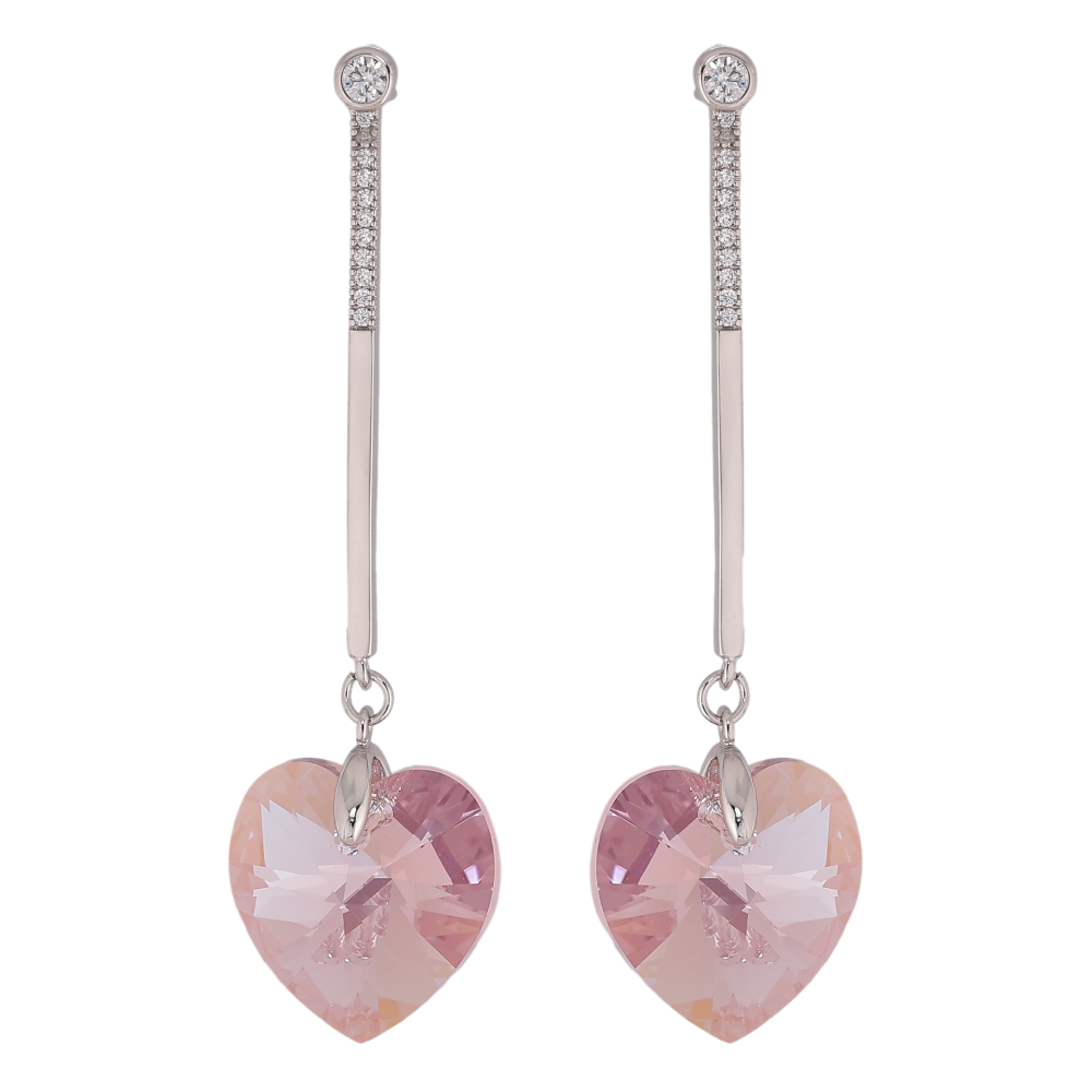Сережки Xuping колір Родій з кристалами Swarovski пусети "Підвіски кристальні серця Light Rose"