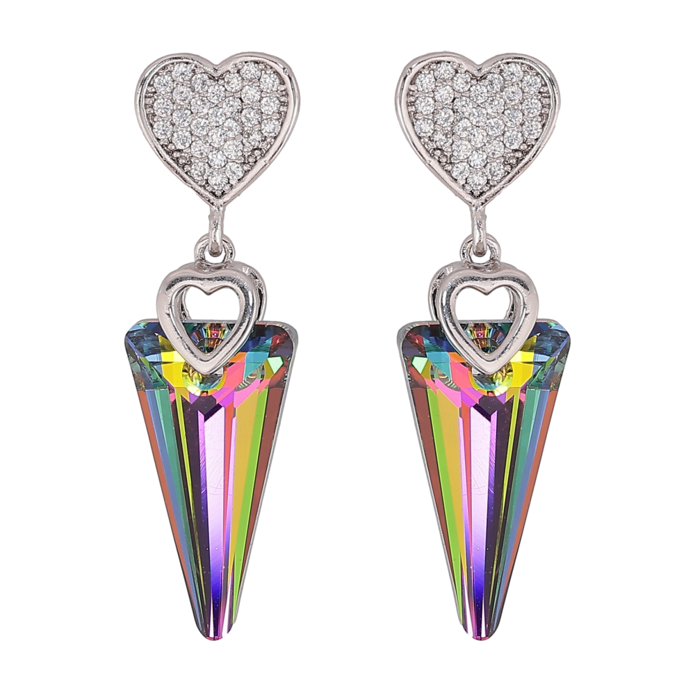 Сережки Xuping колір Родій з кристалами Swarovski пусети «Сердечка з кристалами Vitrail Medium»