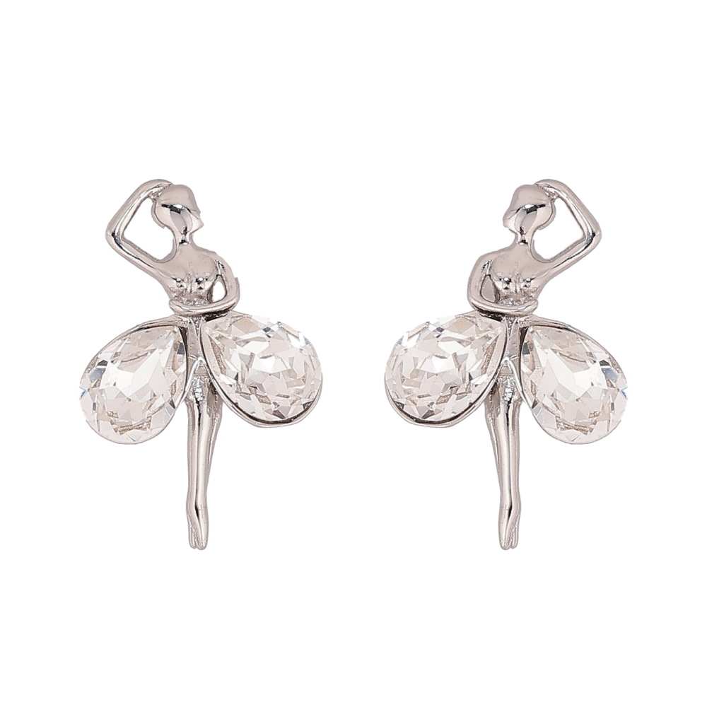 Сережки Xuping колір Родій з кристалами Swarovski пусети "Танцівниці з кристалами Clear"