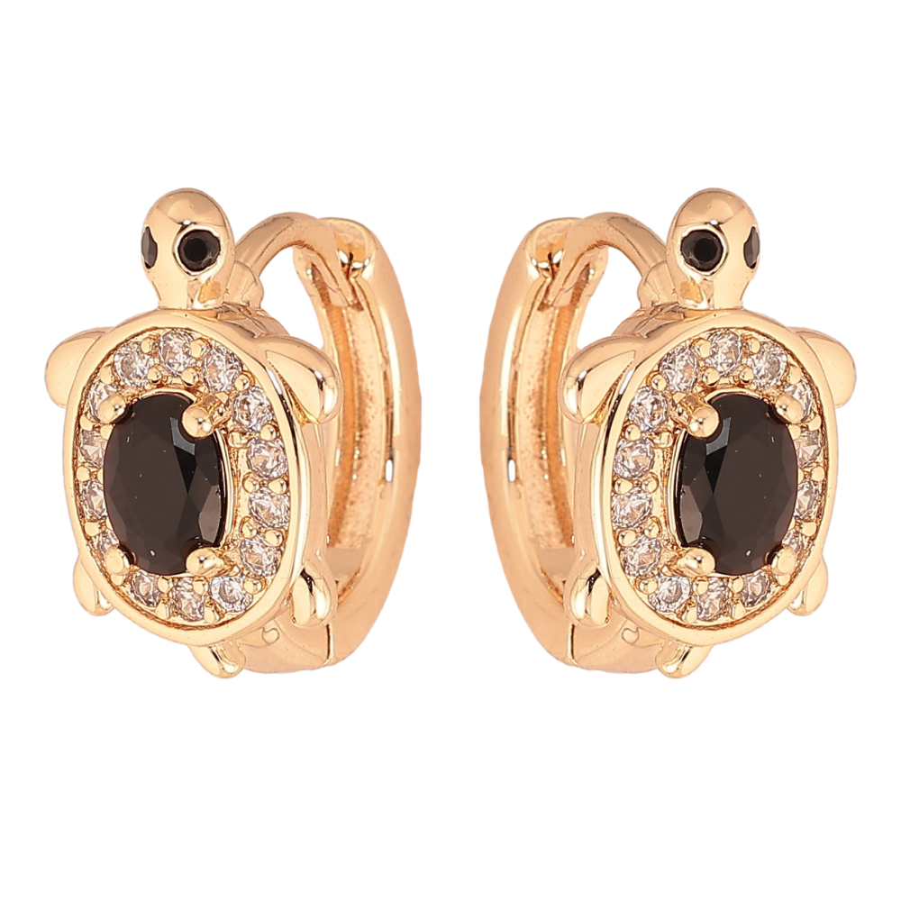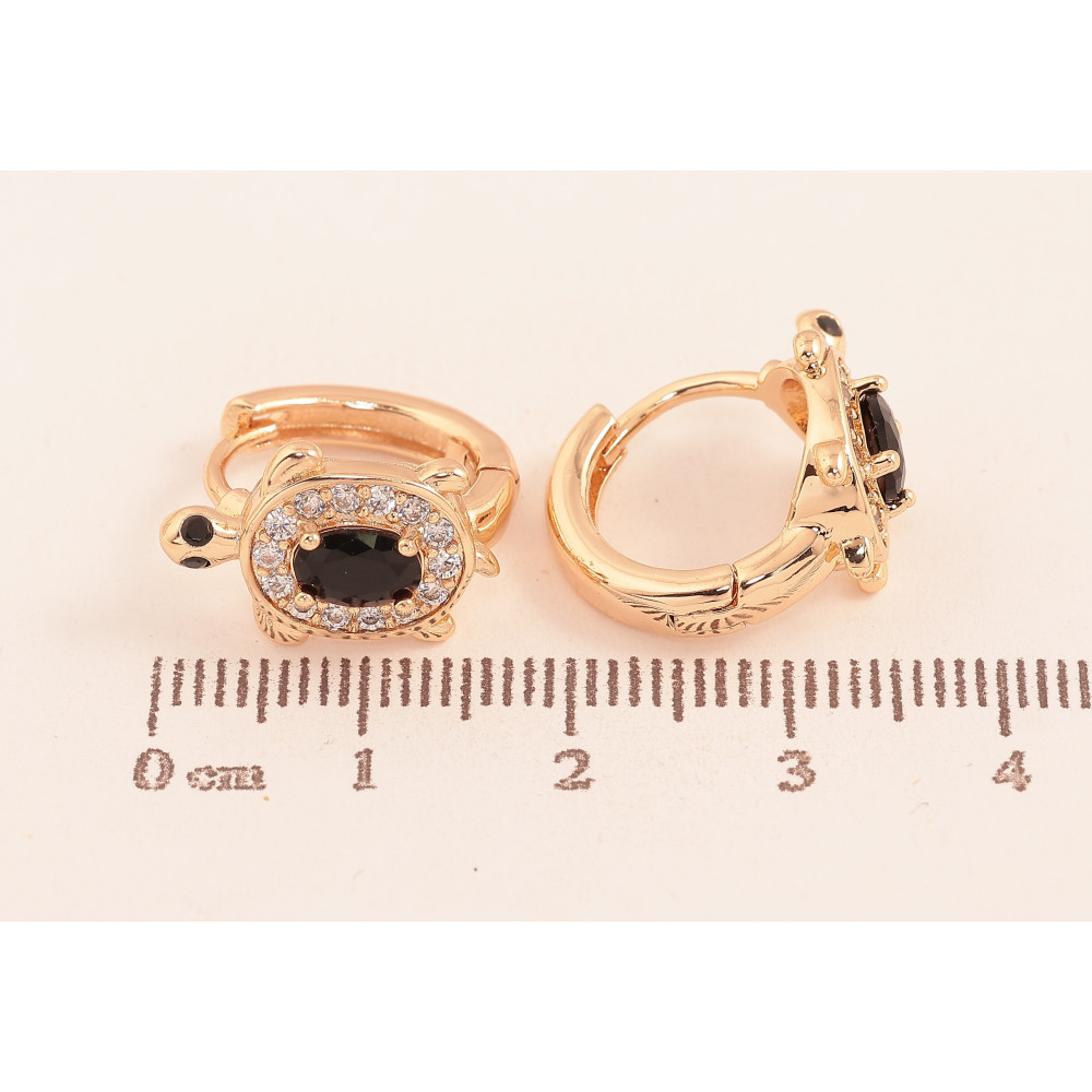 Сережки Xuping M&L колір 18K колечка "Черепашки з чорними кристалами"