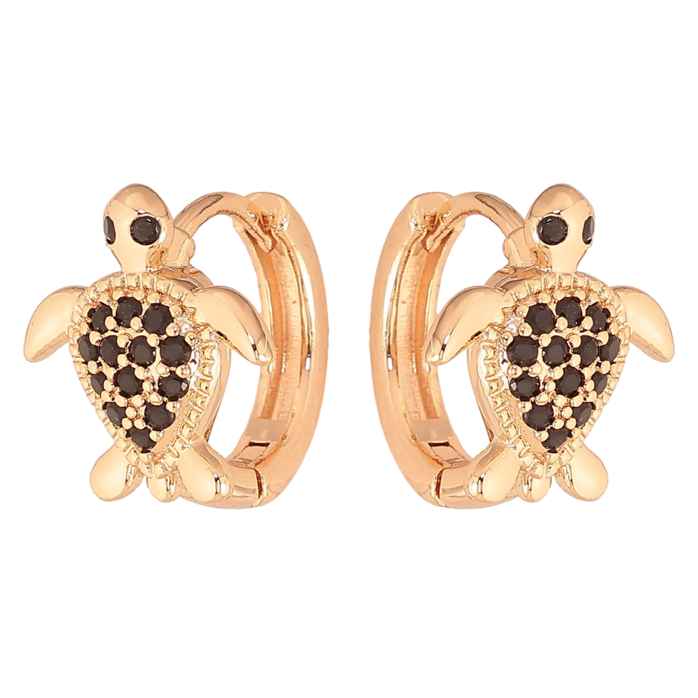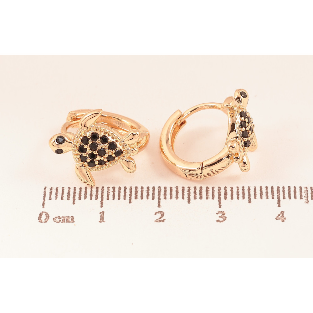Сережки Xuping M&L колір 18K колечка "Черепашки з чорними кристалами"