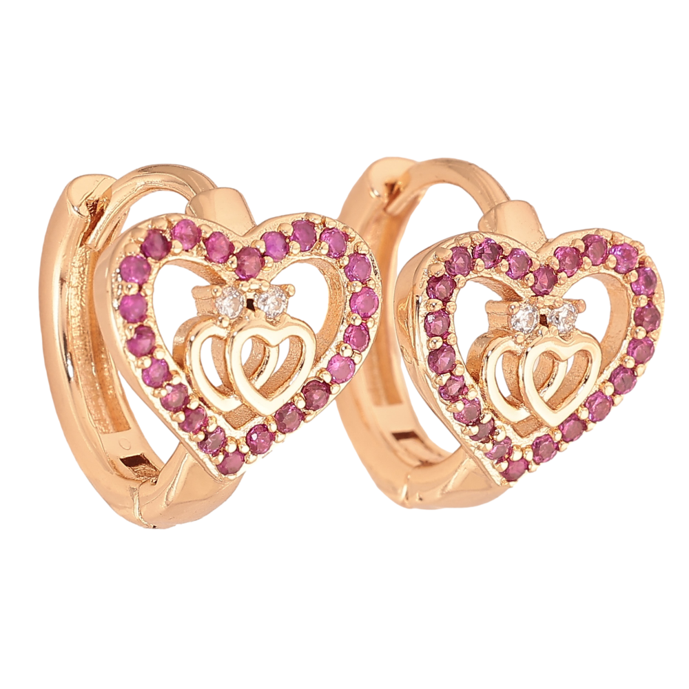 Сережки Xuping M&L колір 18K колечка "Сердечки з малиновими кристалами"