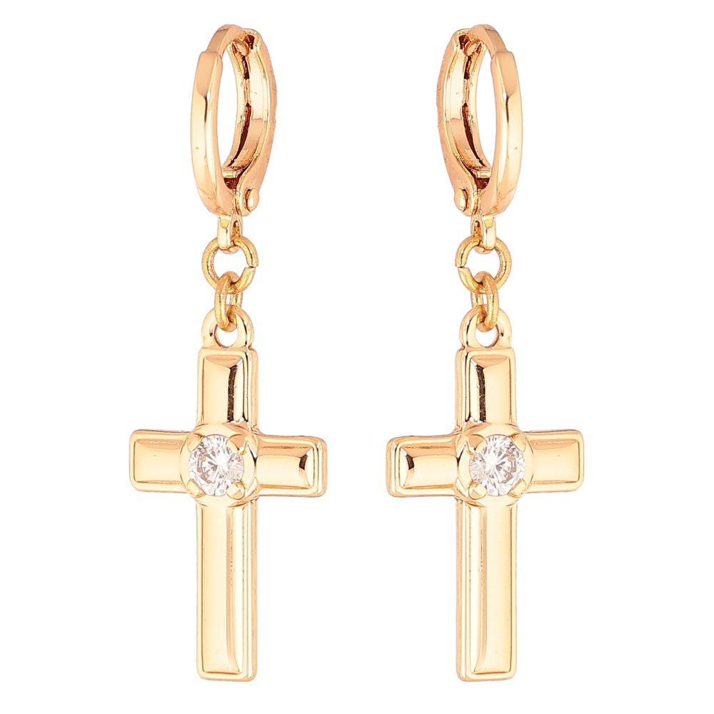 Сережки Xuping M&L колір 18K підвіски на колечках "Хрестики з кристалами"