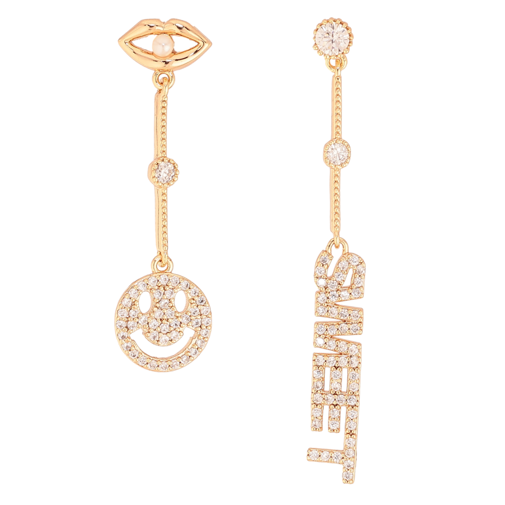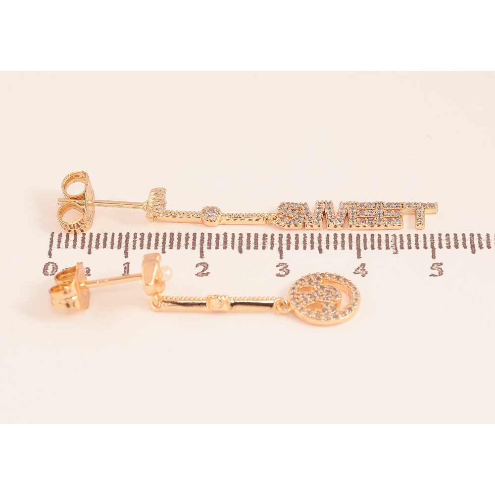 Сережки Xuping M&L колір 18K пусети "Різнопланові підвіски з інкрустацією кристалами"