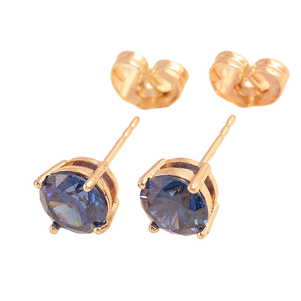 Сережки Xuping M&L колір 18K пусети "Сині кристали в 4-х крапановій оправі" ø 7мм