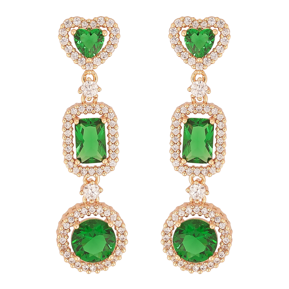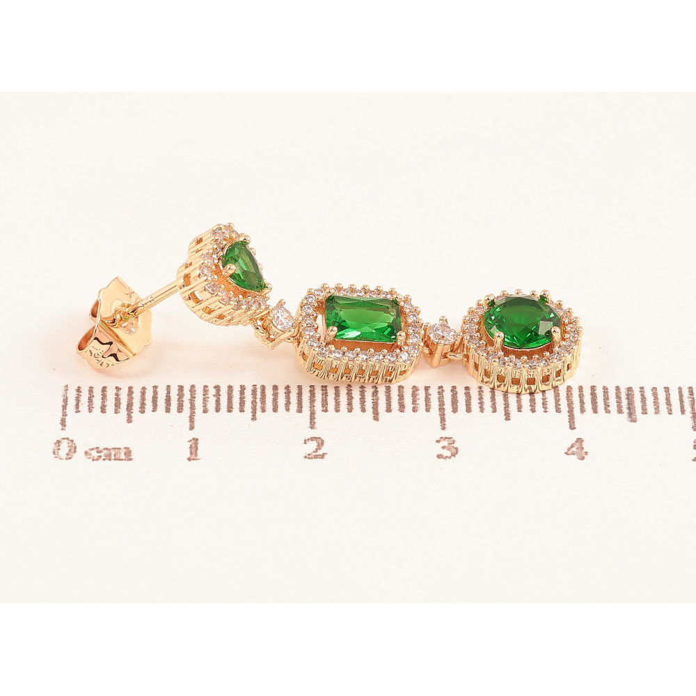 Сережки Xuping M&L колір 18K пусети "Зелені кришталеві підвіски"