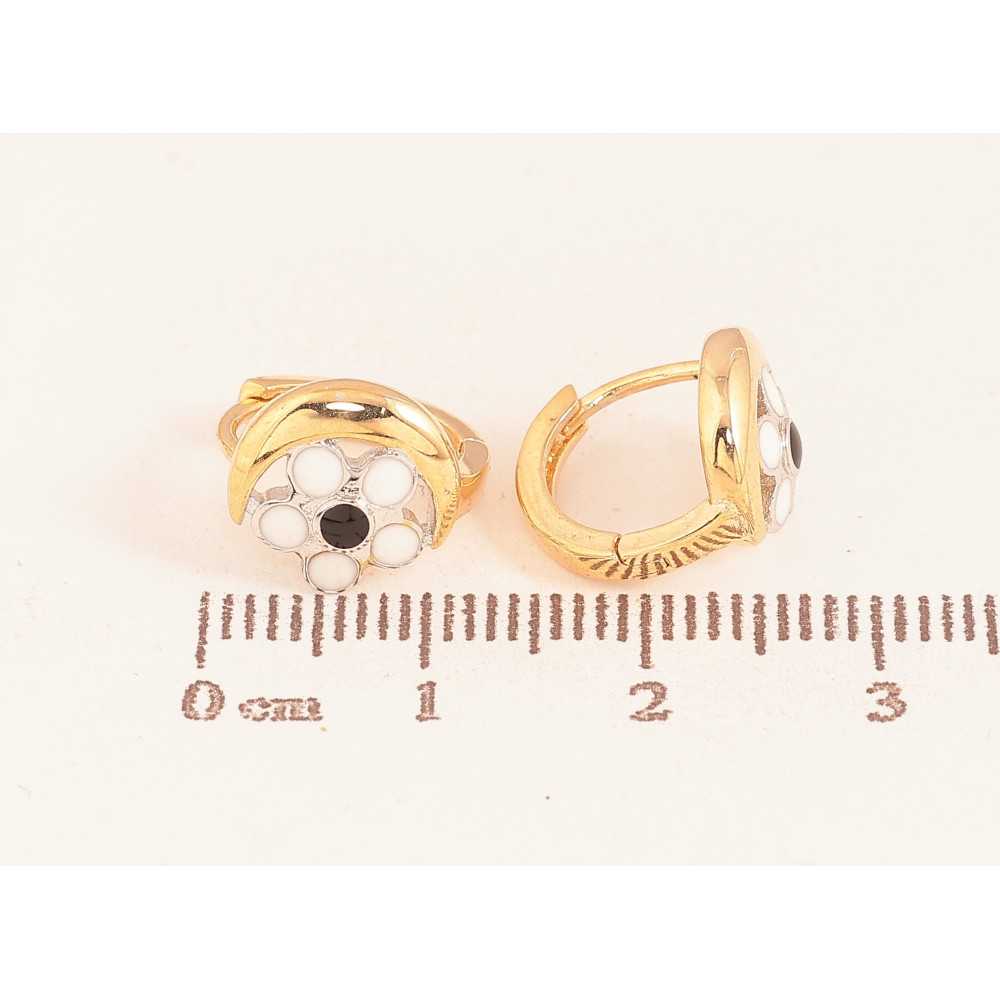 Сережки Xuping Позолота 18К+Родій колечка "Квітка чорно-біла емаль"