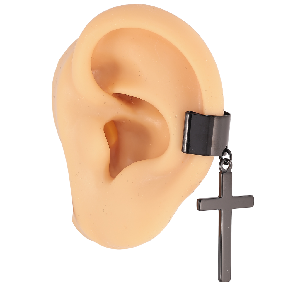 Сережки Xuping Позолота Black (чорне золото) моно-каффа "Хрестик"