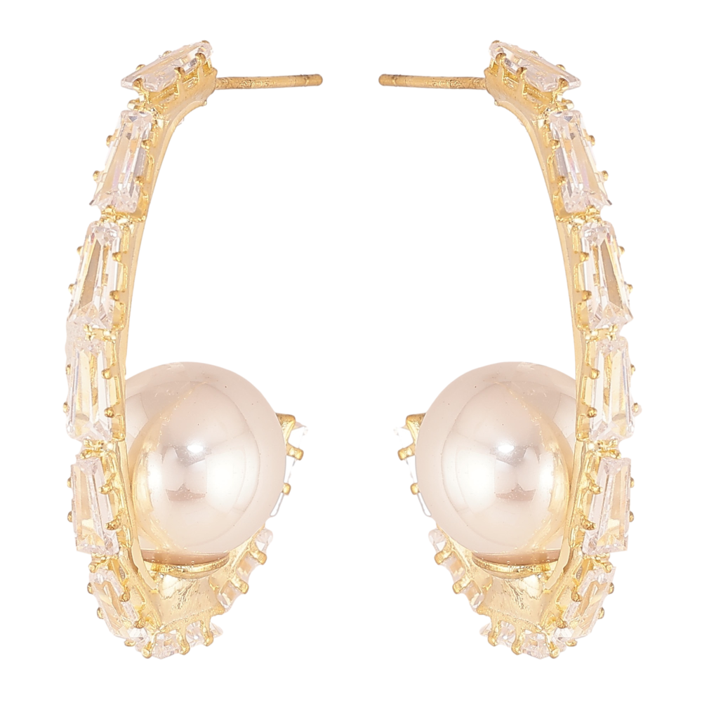 Сережки Xuping QQMM колір Позолота 14K пусети "Дуги з кристалами та перлинами"
