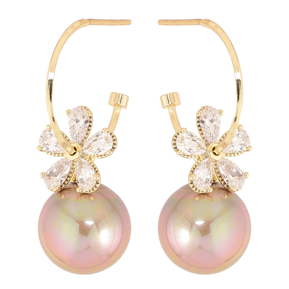 Сережки Xuping QQMM колір Позолота 14K пусети "Дуги з кристальними квіточками та перлинами"
