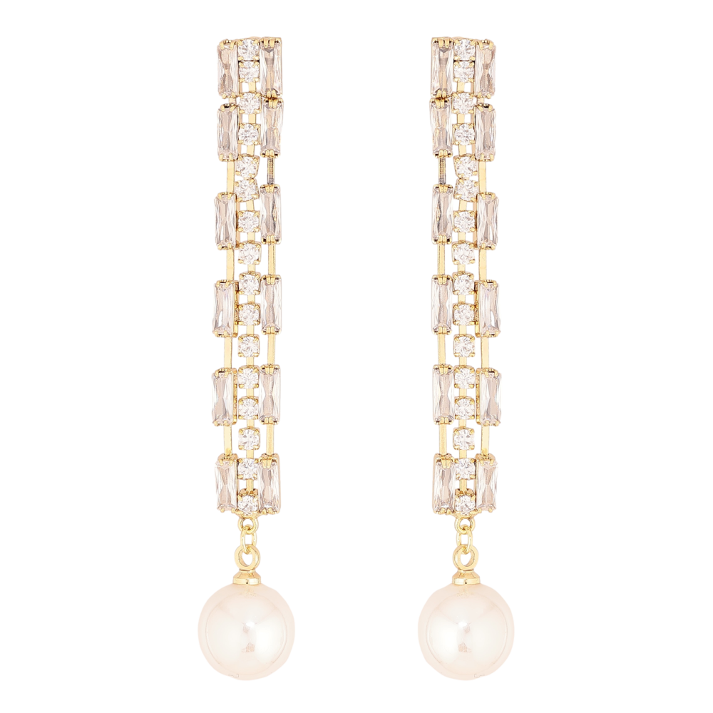Сережки Xuping QQMM колір Позолота 14K пусети "Кристальні підвіски з перлами"