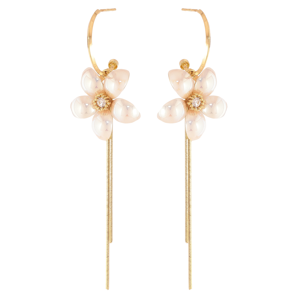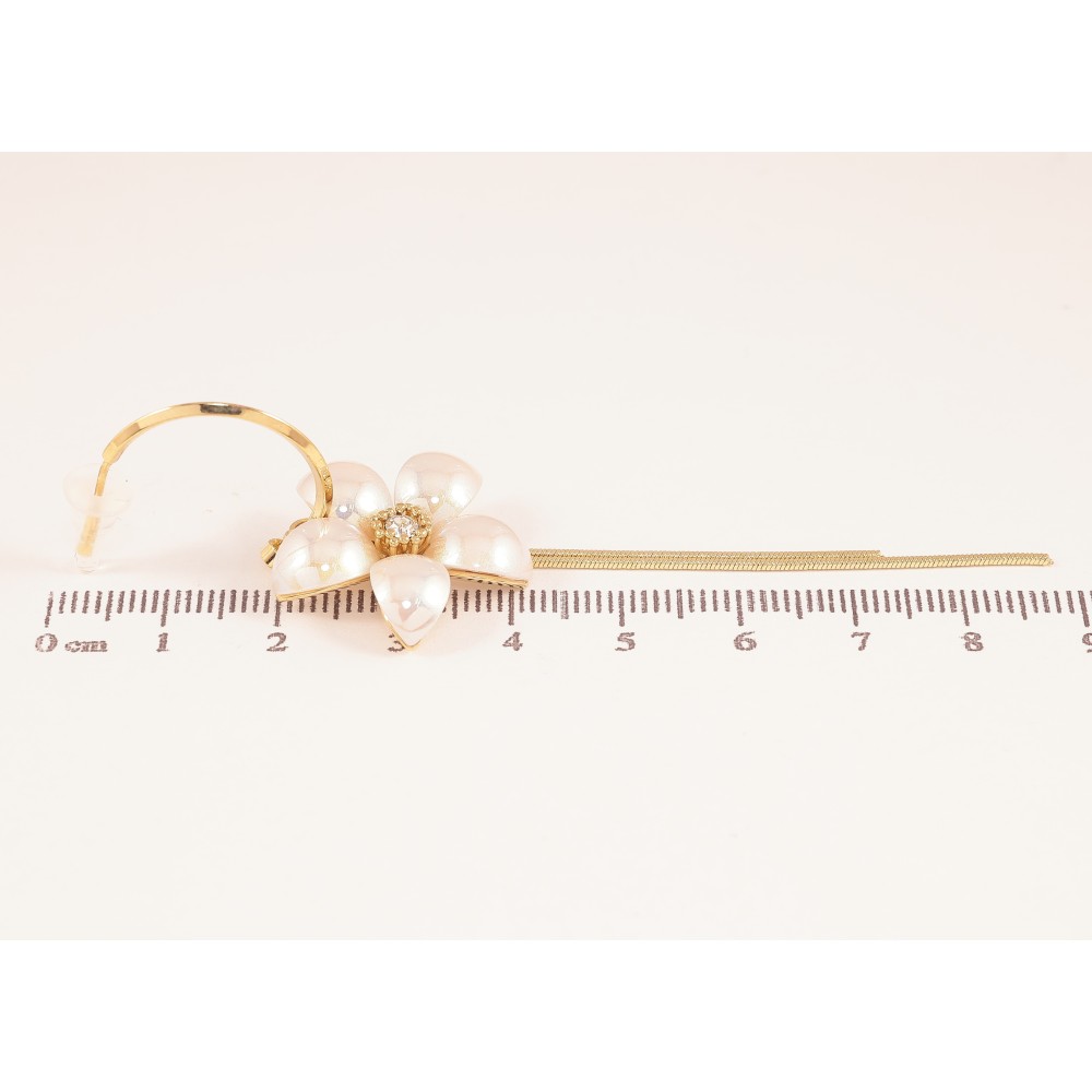 Сережки Xuping QQMM колір Позолота 14K пусети "Перламутрові квіточки з підвісками"