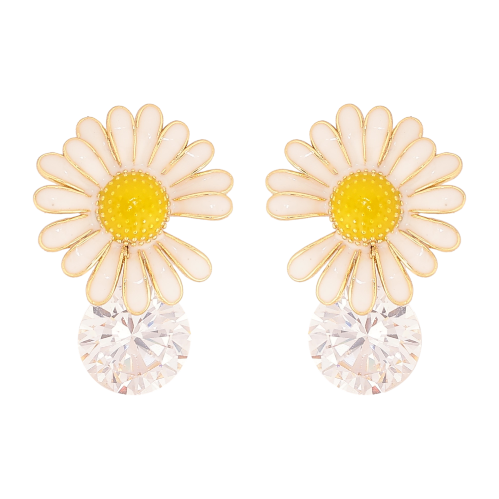 Сережки Xuping QQMM колір Позолота 14K пусети "Ромашки з кристалами"