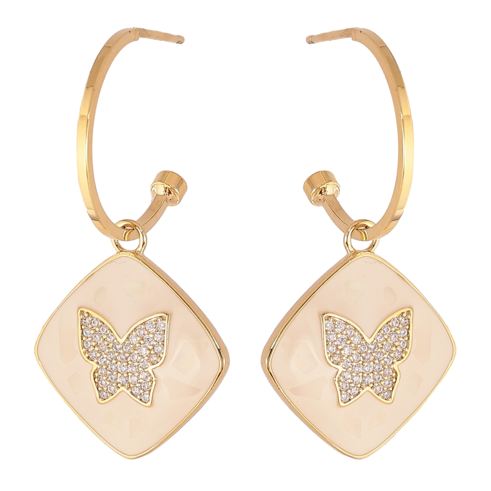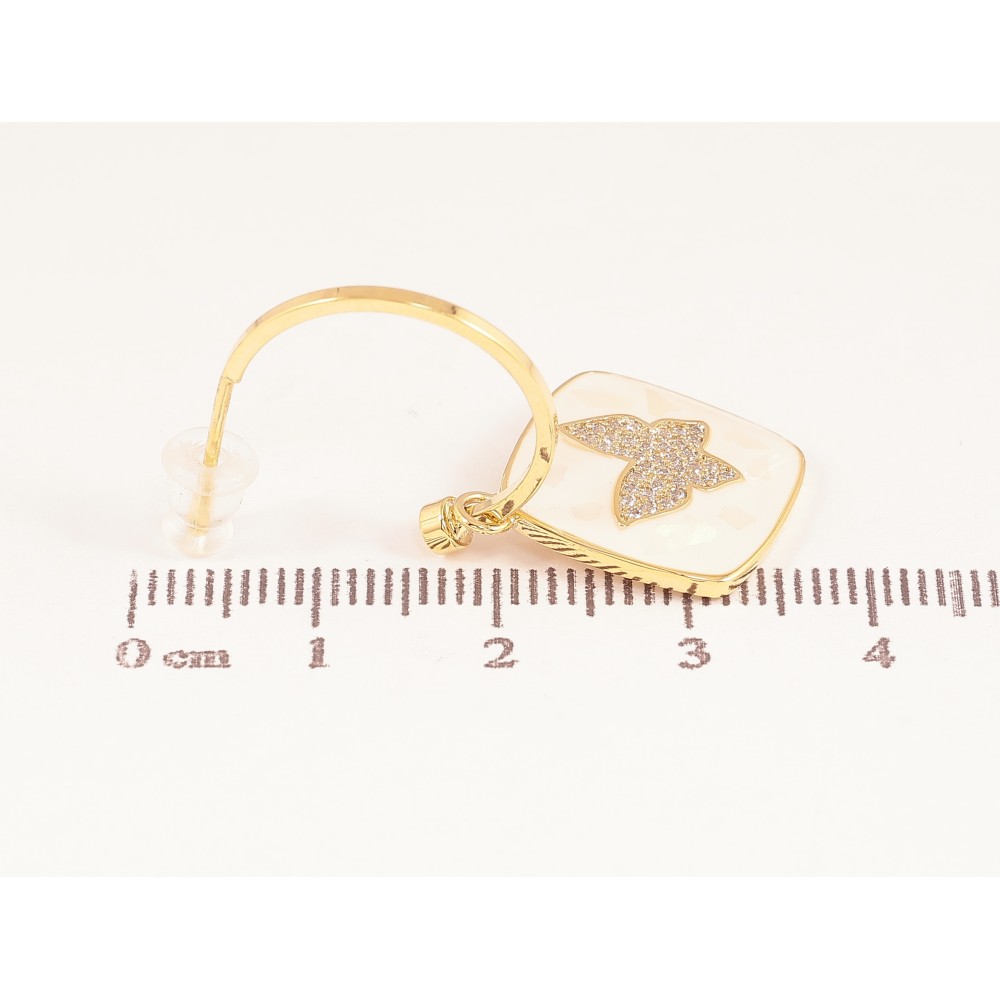 Сережки Xuping QQMM колір Позолота 14K пусети "Ромби з метеликами та білою емаллю"