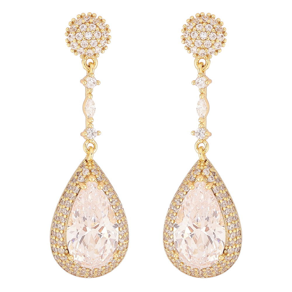 Сережки Xuping QQMM колір Позолота 14K пусети "Розкішні кристальні крапельки"