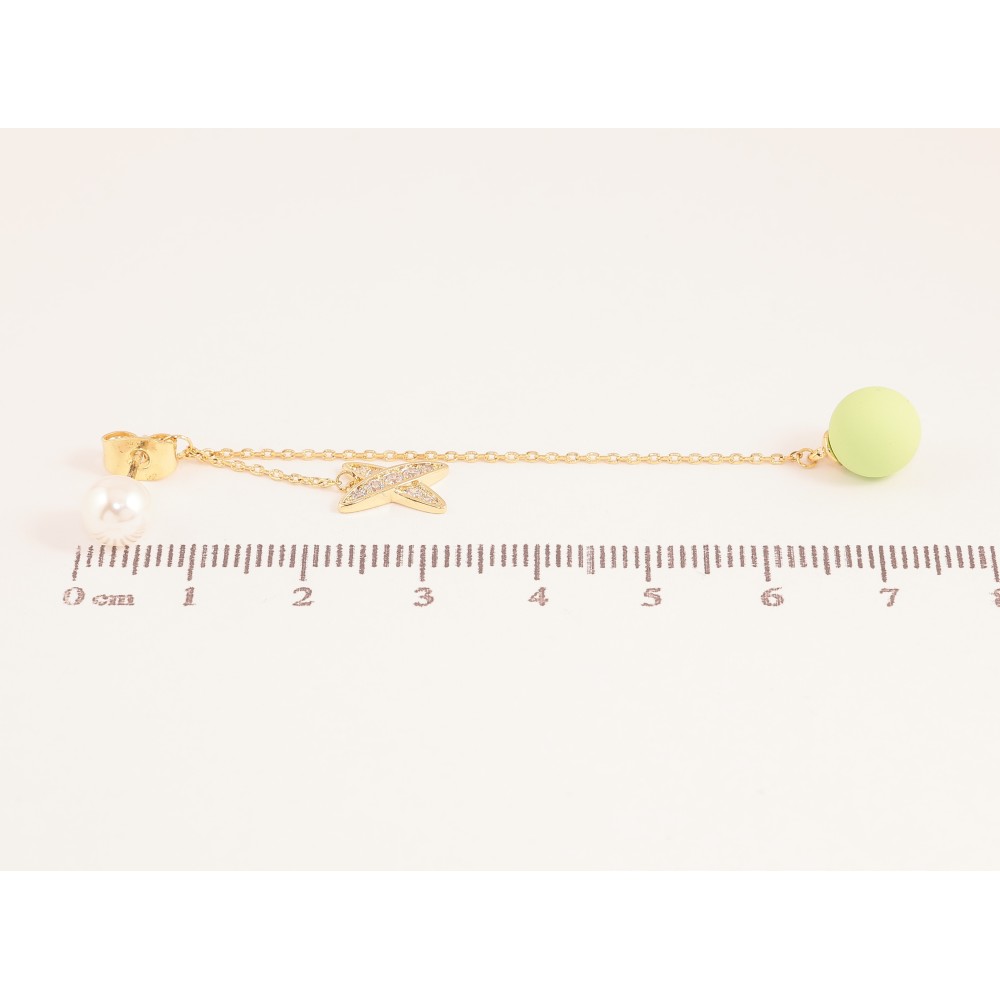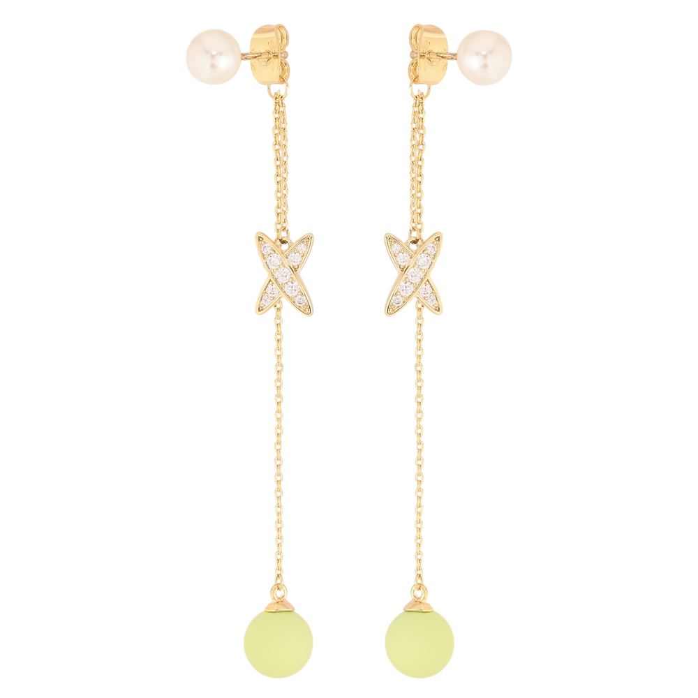 Сережки Xuping QQMM колір Позолота 14K пусети "Салатові кульки з хрестиками на ланцюжках"