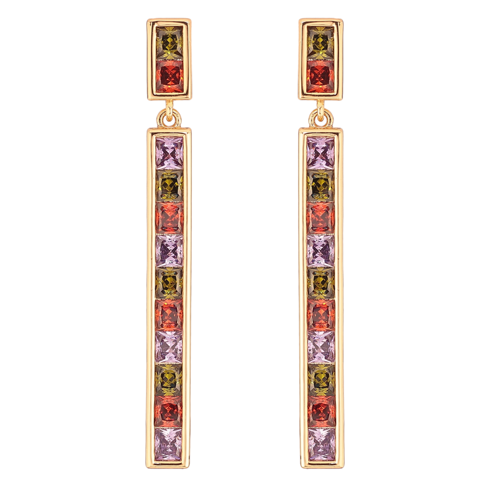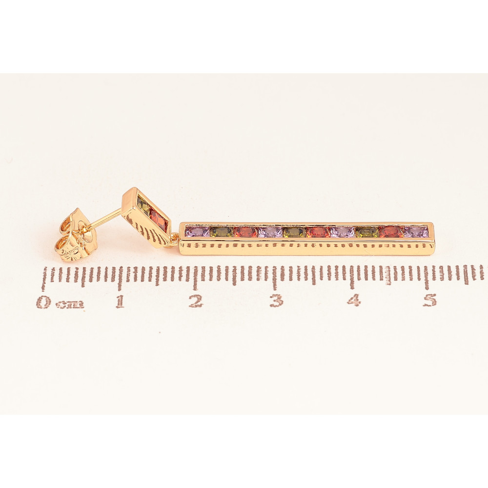 Сережки Xuping QQMM колір Позолота 18K пусети "Доріжки різнокольорових кристалів"