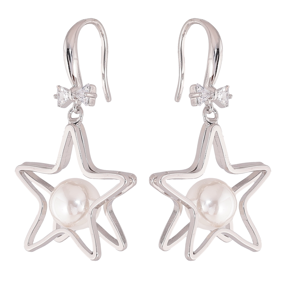 Сережки Xuping QQMM колір Родій французький замок "Зірки з перлинами"