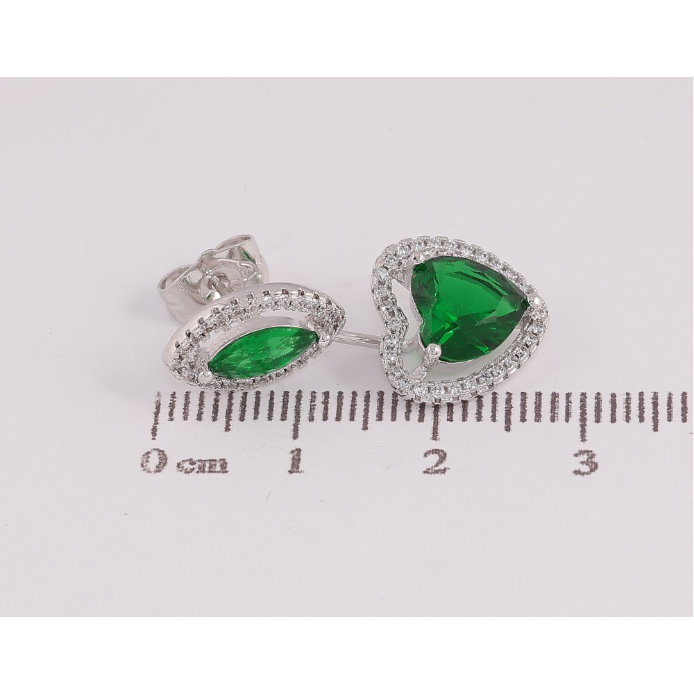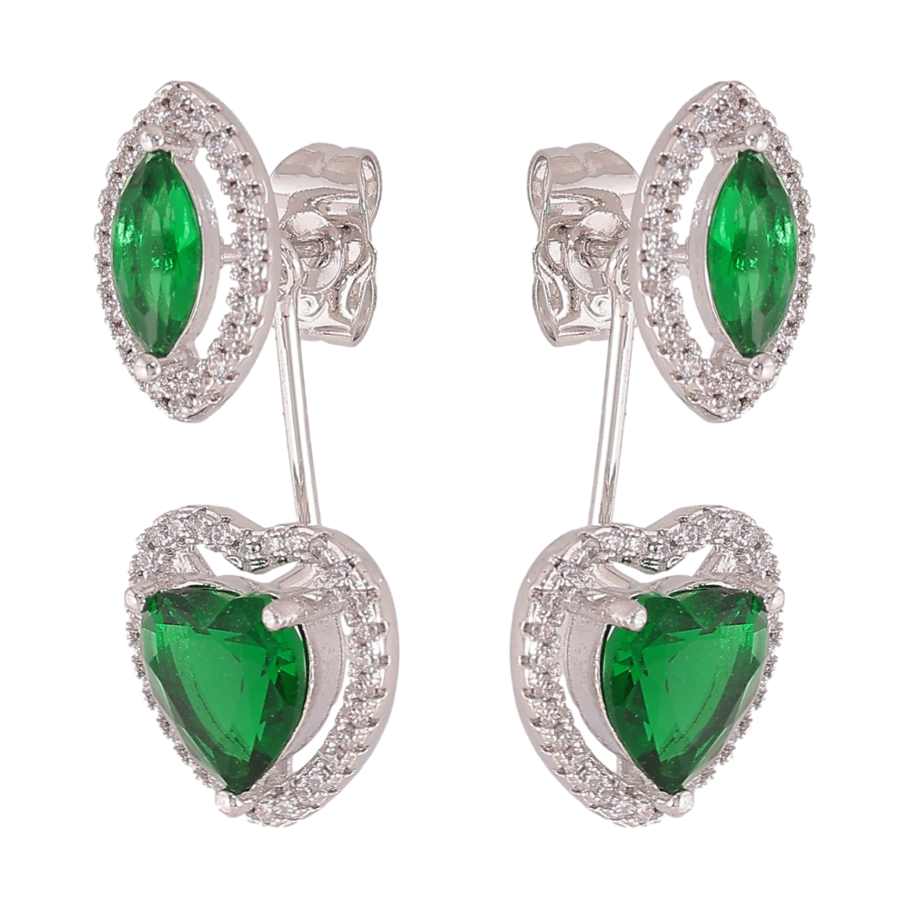 Сережки Xuping QQMM колір Родій пусети-джекети "Романтизм із зеленими кристалами"