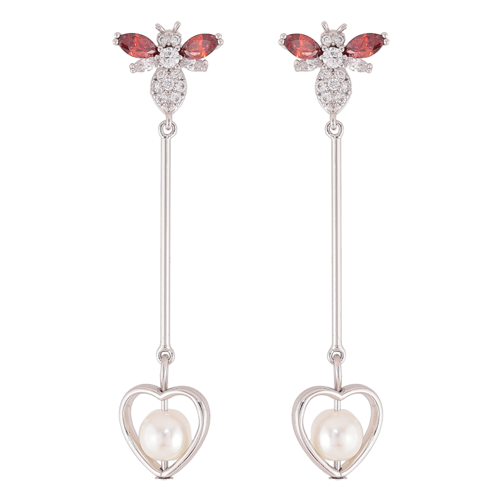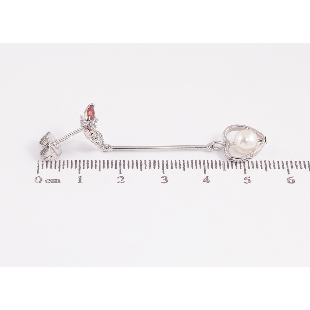 Сережки Xuping QQMM колір Родій пусети "Мушки з перлинними серцями"