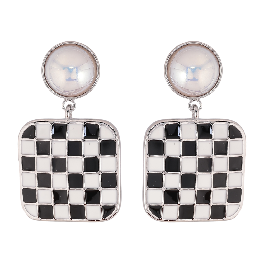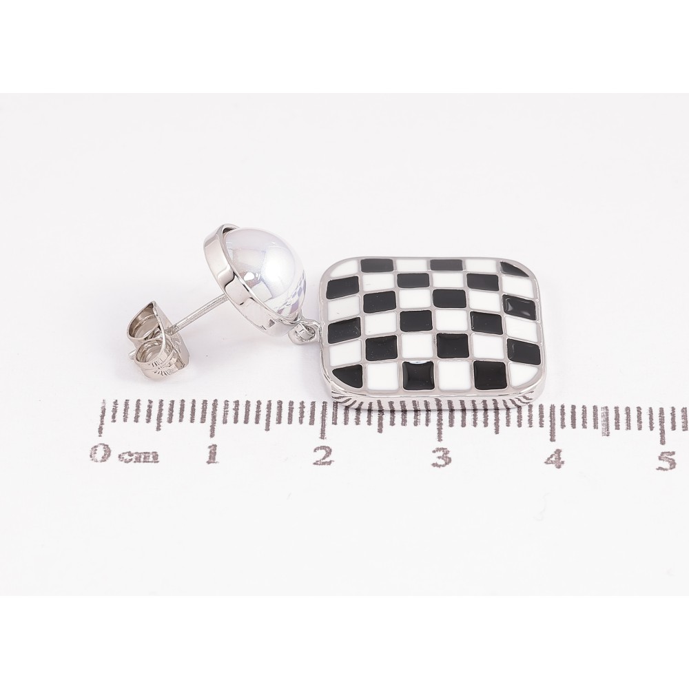 Сережки Xuping QQMM колір Родій пусети "Підвіски шаховий візерунок емаллю"