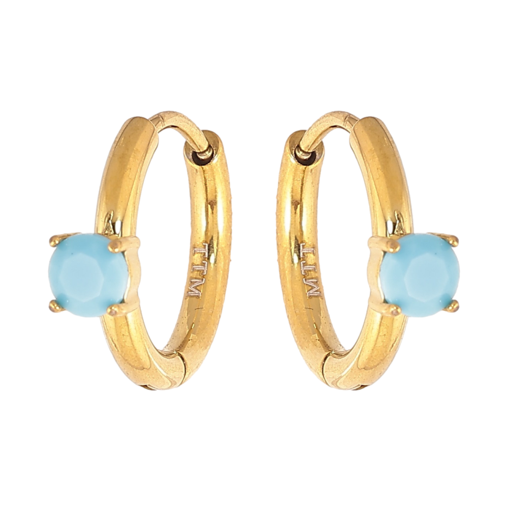 Сережки Xuping TTM Stainless Steel колір 14К колечка "Блакитні кристали"