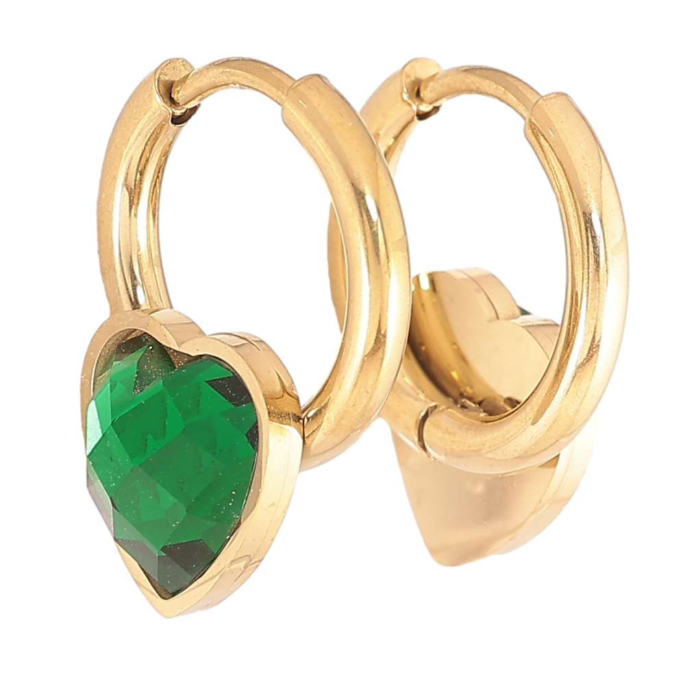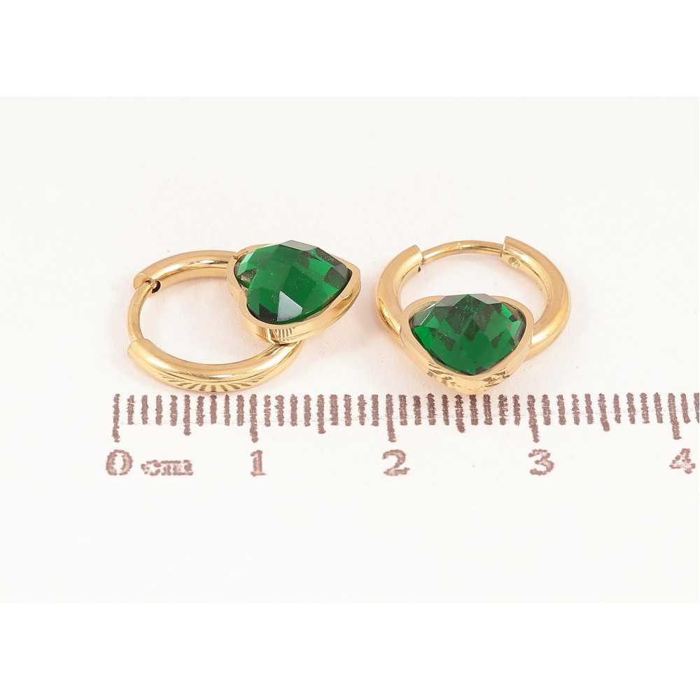 Сережки Xuping TTM Stainless Steel колір 14К колечка "Зелені кристальні серця"