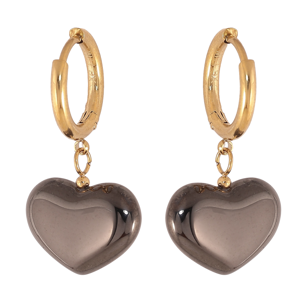 Сережки Xuping TTM Stainless Steel колір 14К підвіски на колечках "Чорні керамічні серця"