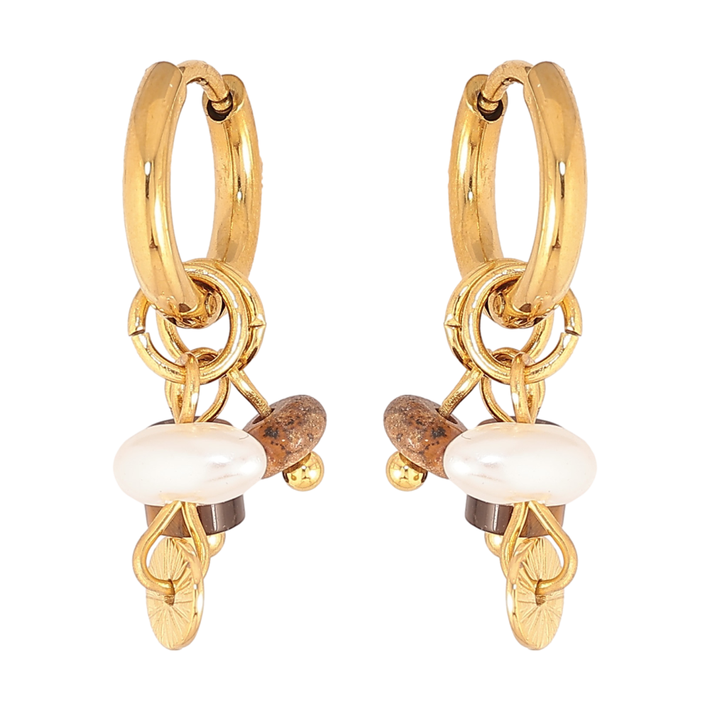 Сережки Xuping TTM Stainless Steel колір 14К підвіски на колечках "Підвіски з намистин" 2 в 1