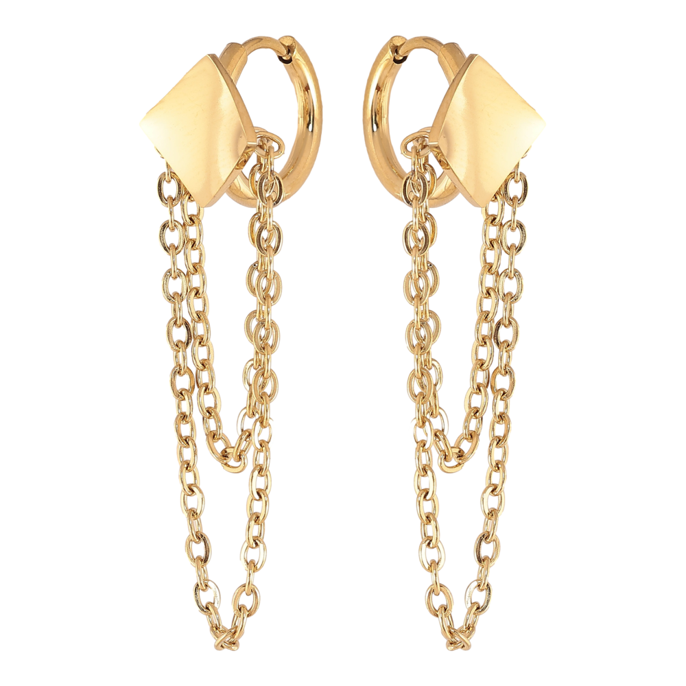 Сережки Xuping TTM Stainless Steel колір 14К підвіски на колечках "Ромби з ланцюжками"