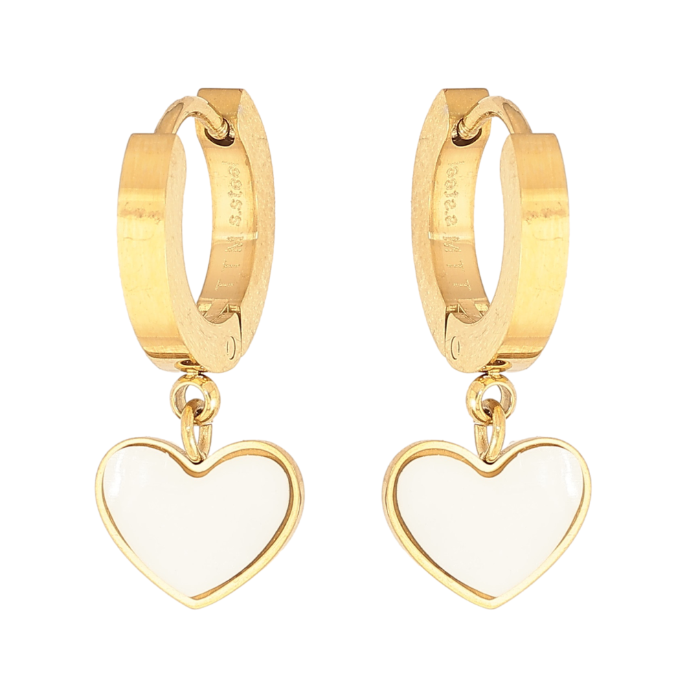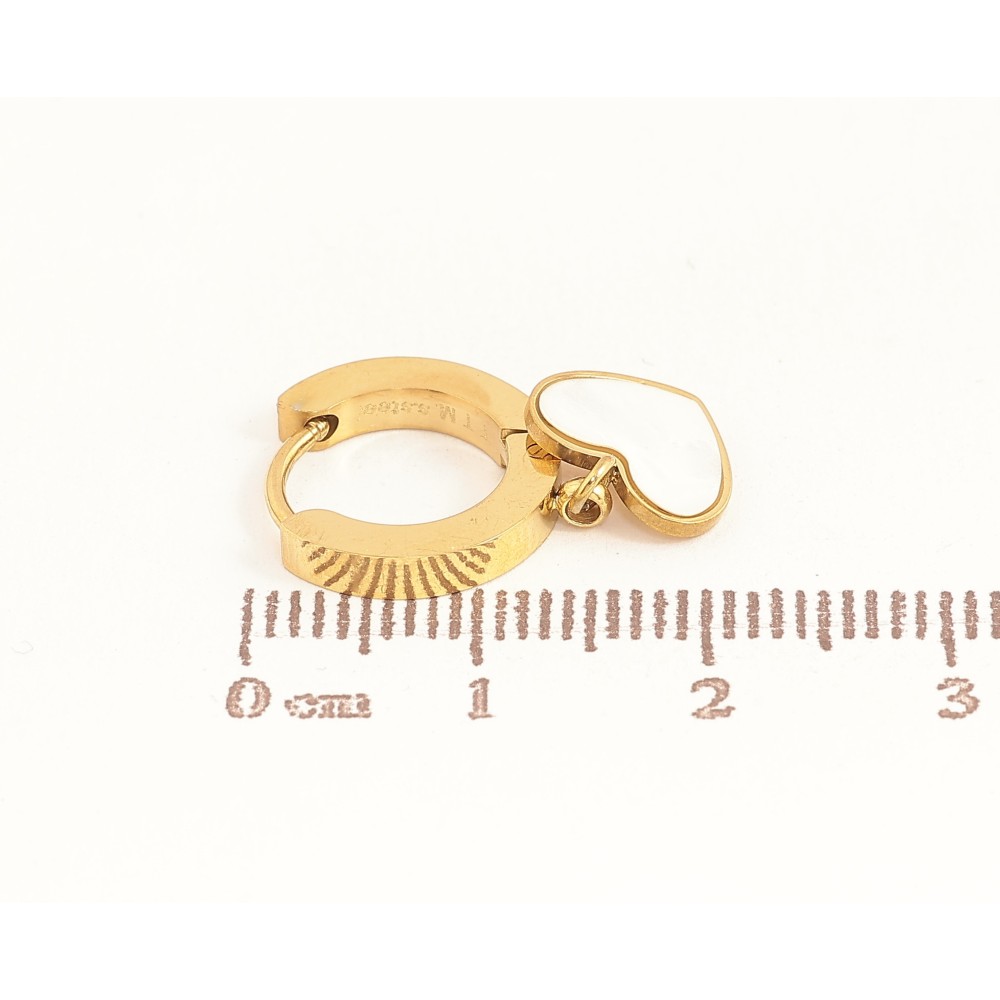 Сережки Xuping TTM Stainless Steel колір 14К підвіски на колечках "Сердечки з перламутровими вставками"