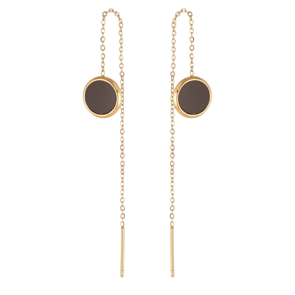 Сережки Xuping TTM Stainless Steel колір 14К протяжки "Кола з чорними вставками"