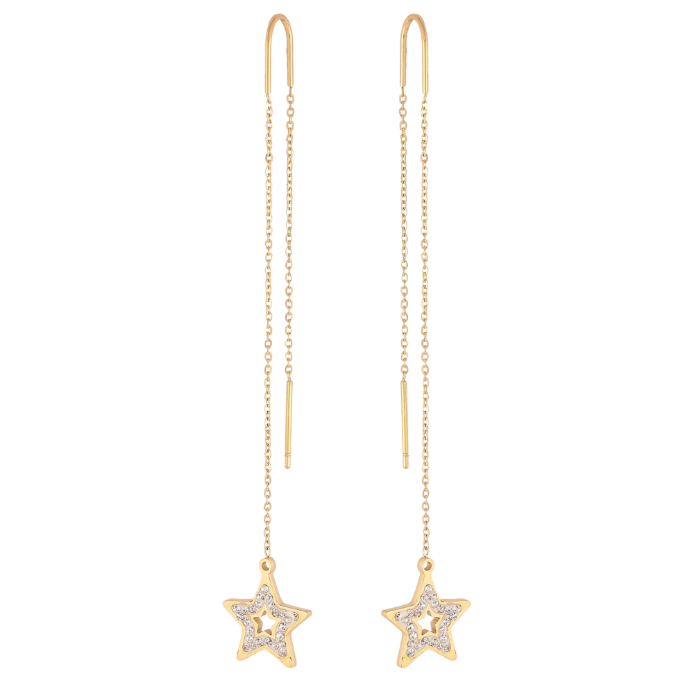 Сережки Xuping TTM Stainless Steel колір 14К протяжки "Зірки з кристалами"