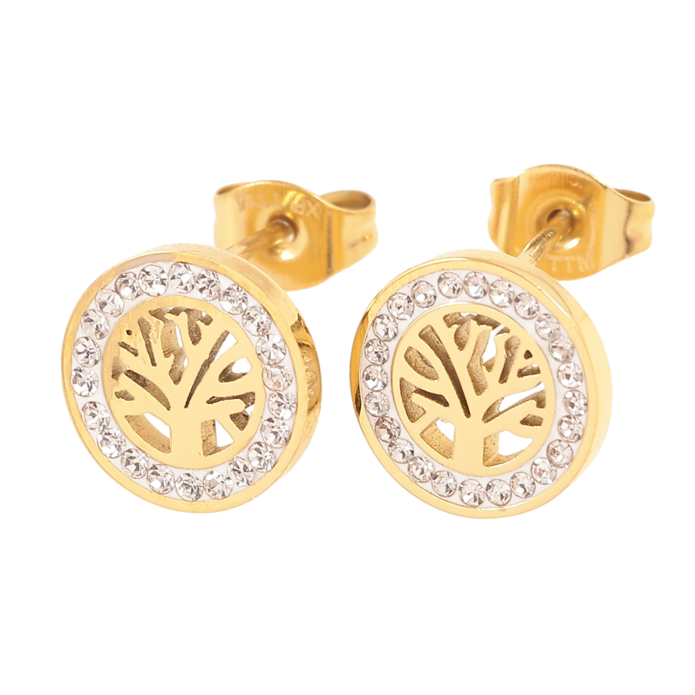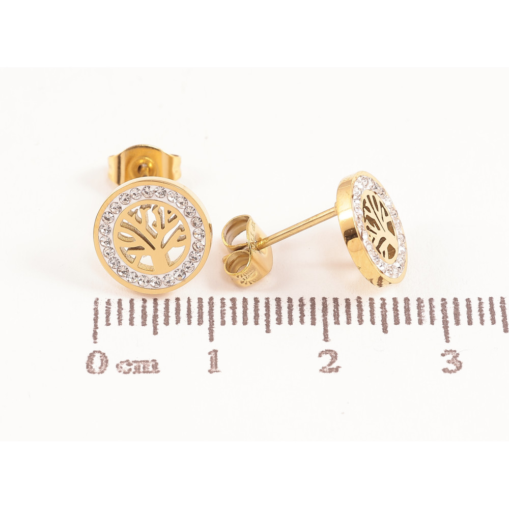 Сережки Xuping TTM Stainless Steel колір 14К пусети древо життя ø 10мм