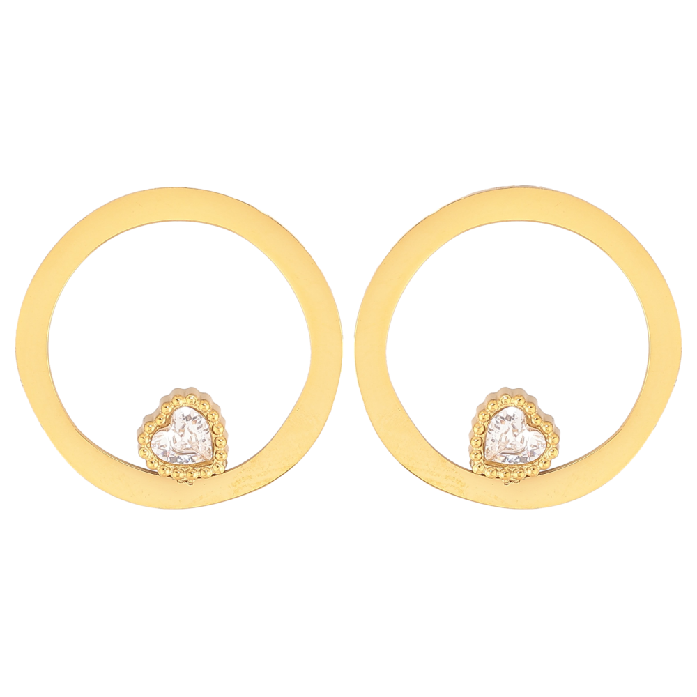 Сережки Xuping TTM Stainless Steel колір 14К пусети "Круги з кристальними серцями"